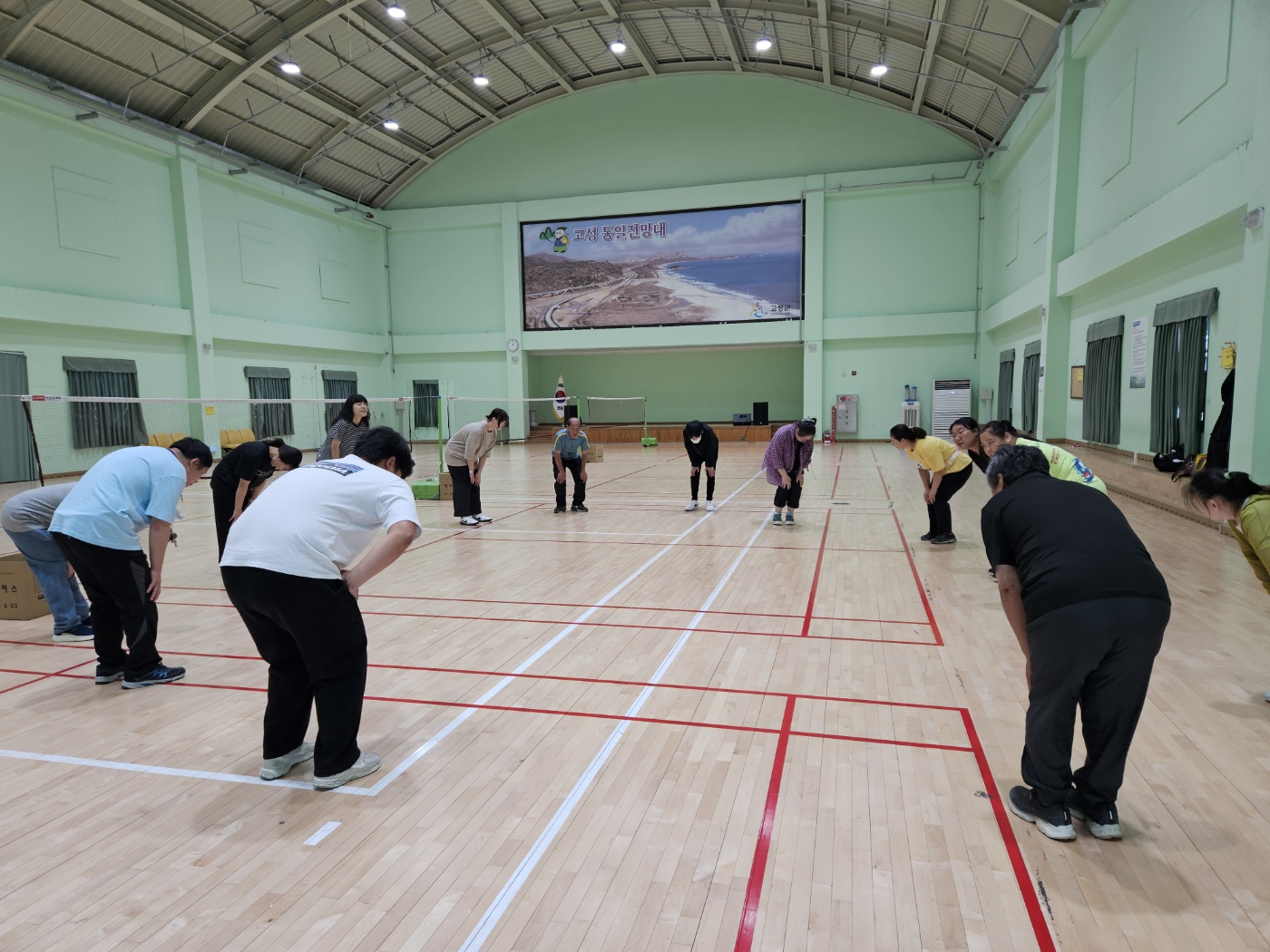 2025.06.10. 준비 운동 후 배드민턴을 하였습니다.