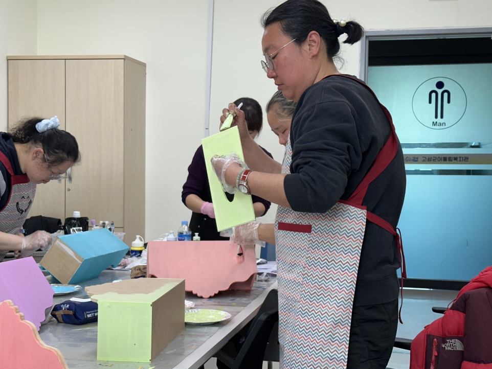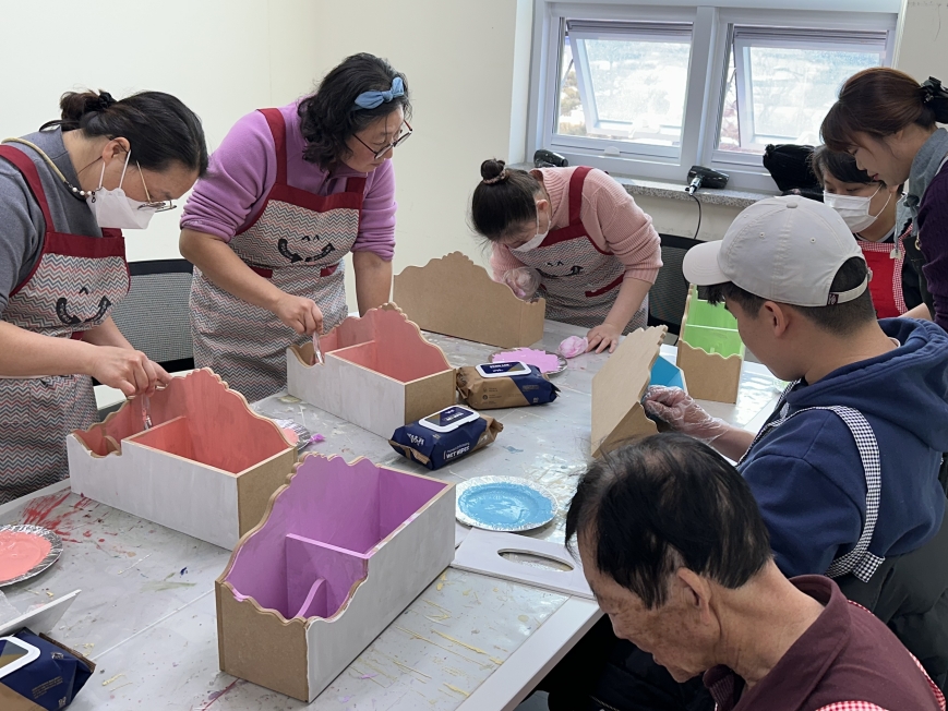 2026.03.11. 공예 엔틱티슈함 채색 작업을 하였습니다.