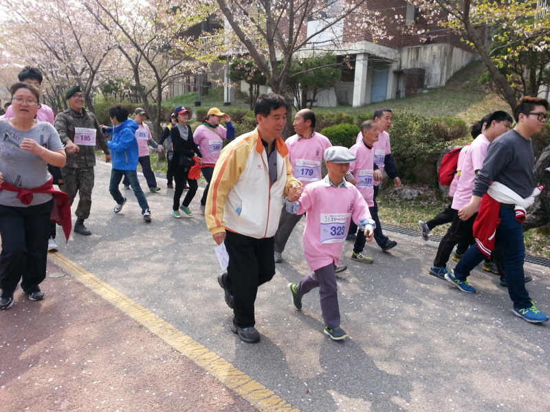 ◇오뚜기 마라톤대회◇-일시 : 2014.4.15(화)/09:30-장소 : 속초 영랑호길옆으로 만개한 벚꽃과 호수를 보며 오랜만에 우리대상자들과 기지개를 펴보다.상큼한 풀잎에내음새와 살갗을 간지럽히는 바람을 가르며 우린 같은맘으로 달려본다
