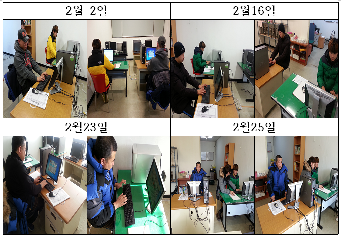 -컴퓨터 수업-장소 : 본협회사무실시간 : 13:00 ~ 14:00내용 : 정보소외 계층인 장애인에게 정화교육을 실시하여 정보사회에 필요한 정보활용 능력배양 및 자격증 취득 목정으로 하여 직업재활 기회를 제공하고자함.목표 : 고성군 지적장애인중 컴퓨터 활용가능한 2명을 선정하여 다가올 2015년 6월에 실시되는 강원도 장애인 IT경진대회 대비하고자함