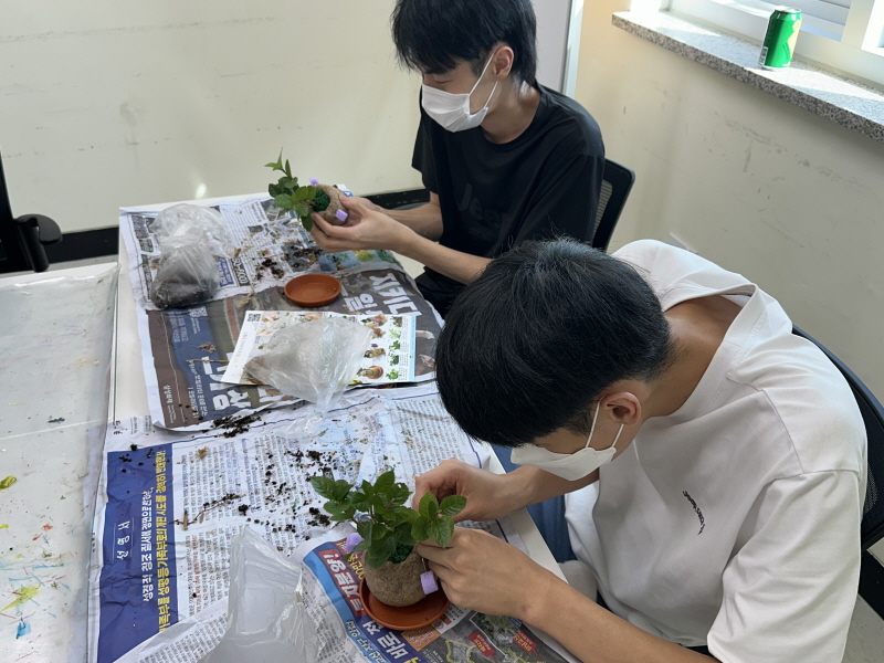 2025.09.15. 원예 시간에 토피어리 화분 만들기로 식물은 산호수를 심었습니다.